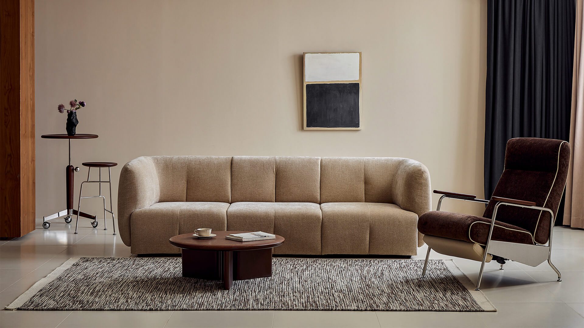 Proportion is everything. Measure the room and map the circulation paths (typically 45–60 cm/18–24 in around the sofa). For large rooms, consider sectionals or modular compositions; for compact spaces, a slim-arm three-seater or a chaise configuration can deliver comfort without crowding. Do not forget rug coverage (front legs on the rug often looks best) and side-table clearances.