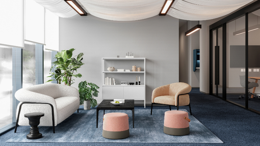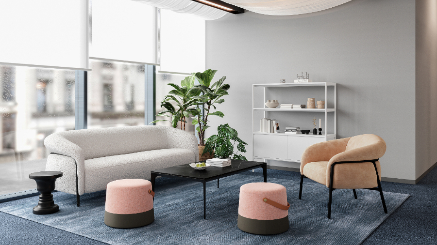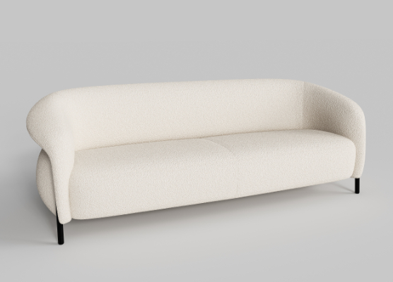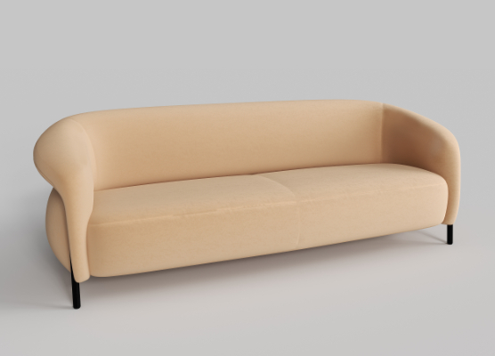 Crafted with a robust pine and plywood frame topped with high-resilience foam, the sofa offers generous comfort and springy support. Its powder-coated steel base is both sturdy and visually lightweight, with protective leg caps to preserve flooring. Available in two sizes—two-seater and three-seater—it suits a range of settings, from playful lounges to informal waiting areas.