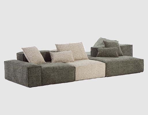 Constructed with a robust plywood and pine frame, layered with high-resilience foam, goose-down filling, and sinuous springs, it delivers plush comfort and support. Upholstered in muslin and non-woven fabrics for a soft yet durable finish, the sofa sits on adjustable plastic legs. Its modular nature, combined with premium materials and cozy aesthetics, makes it a dynamic and inviting seating solution.