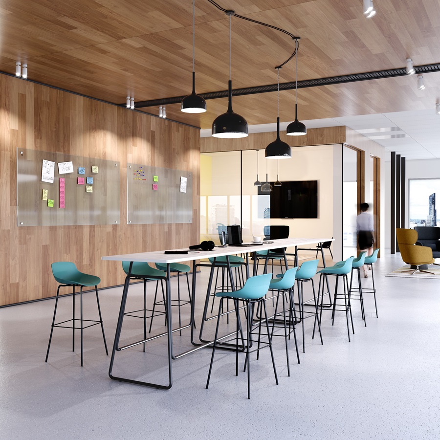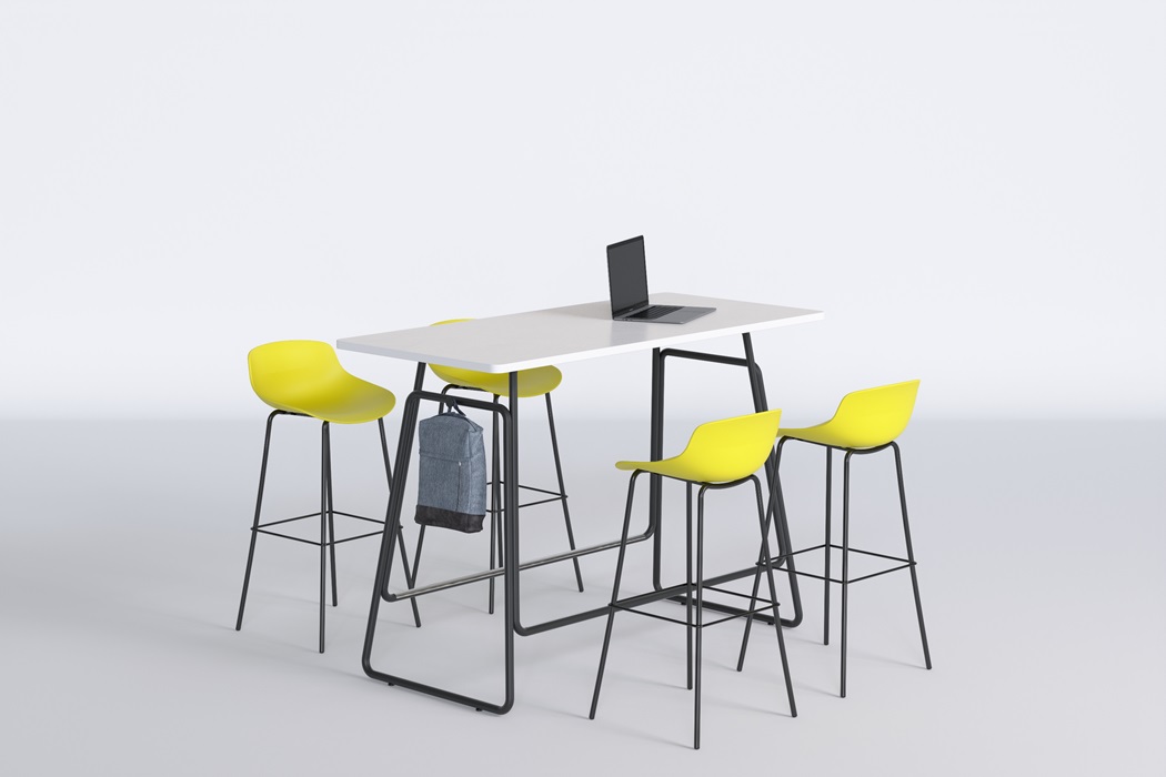 The Link Bar Table draws inspiration from the humble paperclip, transforming its simple loop structure into a sculptural steel base composed of four interconnected rings. This playful yet elegant design supports a minimalist table top, making the piece both functional and visually intriguing. Perfect for collaborative zones and breakout areas, its lightweight aesthetic fosters connection and conversation.