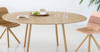 This table features a slim tabletop supported by angled steel legs, giving it a lightweight yet durable structure. Available in multiple shapes, sizes, and finishes—including wood veneer, HPL, and lacquered options—it provides flexibility to match various styles and needs. Optional electrification features, including integrated power access, make it ideal for dynamic work settings. Its understated design and strong construction offer both aesthetic value and long-term performance.