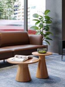 Inspired by the elegant curve of an A-line skirt, the Skirt Wooden Table features a subtly pinched waist and flared base that create a sense of lightness and refined aesthetic balance. Available in two sizes, its flowing form adds sculptural elegance to lounge areas, reception zones, and design-forward interiors.