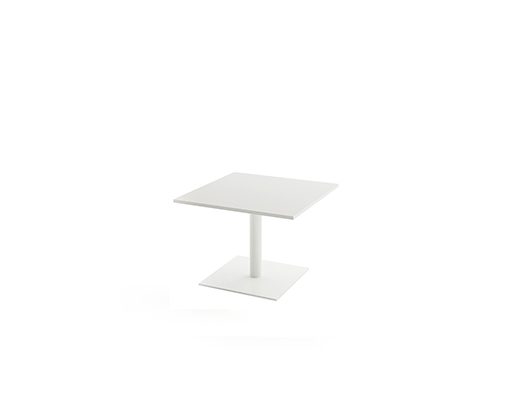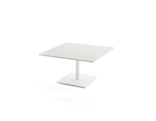 This versatile table stands out with its clean aesthetics and customizable design. It comes in multiple sizes and shapes, ensuring adaptability to any environment. Choose from durable tabletop materials like low-pressure laminate (19 mm) or compact laminate (12 mm), available with black or white PVC-edged finishes. The base is crafted from powder-coated steel in white (RAL 9016), black (RAL 9005), or silver, offering high durability and modern appeal. Available in various heights (37 cm, 72 cm, 110 cm), it adapts effortlessly to different seating arrangements.