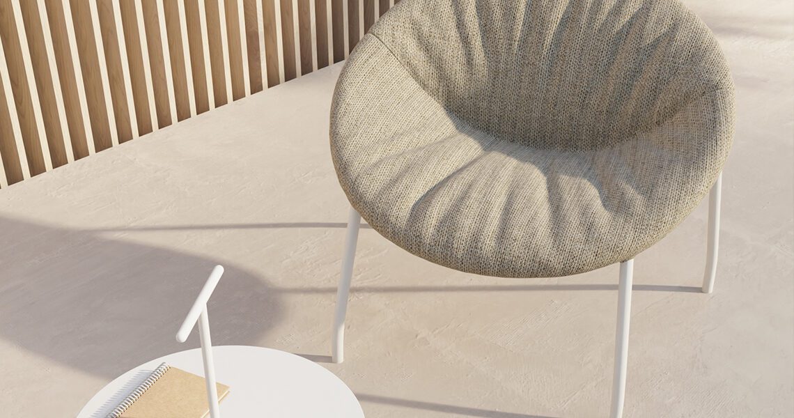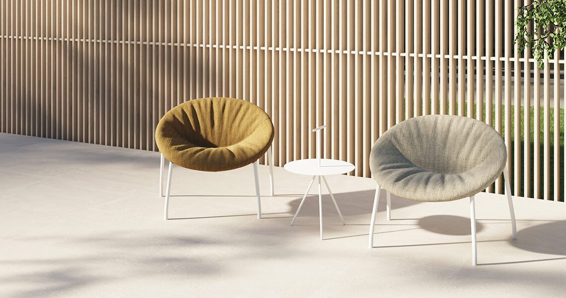 Design lounge chair for outdoor use. Its silhouette is very comfortable and offers immediate comfort. Its upholstery has been adapted for outdoor use, providing durability and resistance. Ideal for offices and collaborative spaces that want to decorate the terrace and garden with designer furniture.